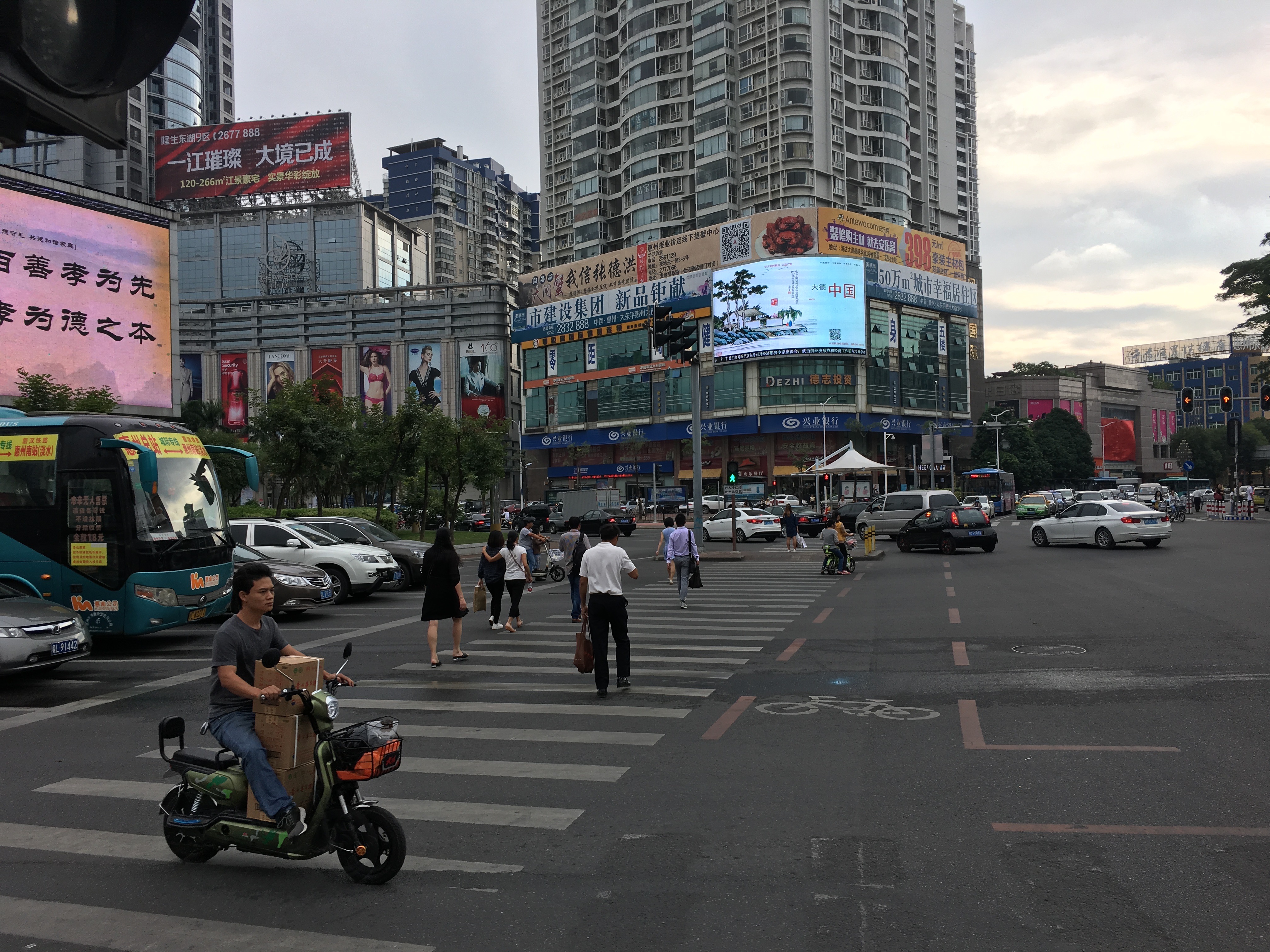 Nous sommes rendus pas mal le plus au sud de la Chine. Huizhou est très près de Hong-kong. C’est à la même hauteur que le nord de Cuba. Juste pour donner une grandeur d’idée, le nord de la chine arrive pratiquement au début de la bien d’Hudson. C’est vraiment grand la Chine. On a fait quelques trajets en voiture jusqu’à maintenant et la conduite est très différente. Premièrement les lignes de marquage au sol sont pratiquement une indication de combien de voitures peuvent passer cote à côté. Ensuite, tous les changements de voies ne semblent pas nécessiter de signaux clignotants. Le klaxon sert régulièrement pour indiquer sa présence aux autres lorsqu’on arrive derrière ou à côté d’eux. Rien d’insistant ou d’agressif, juste un petit coup pour dire coucou je suis là. Malgré tout ça je crois que j’ai vu seulement un accrochage ce matin.